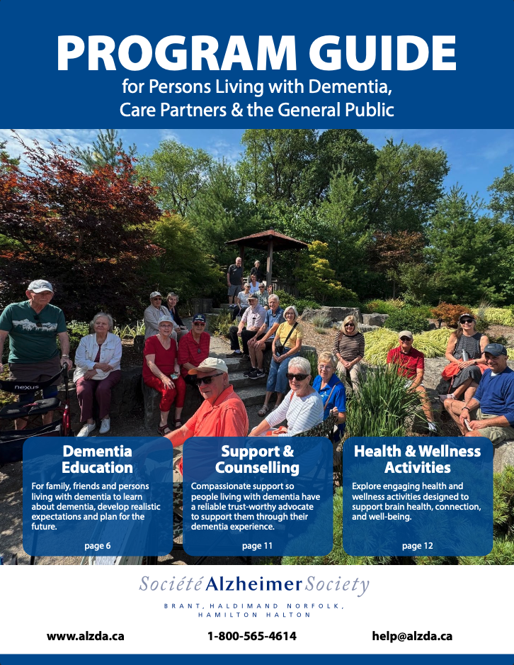 At the Alzheimer Society of Brant, Haldimand, Norfolk, Hamilton, and Halton, we are here to the communities we serve. Our Program Guide connects you to a range of free resources designed to provide education, support, and wellness opportunities for individuals living with dementia, their care partners, and the community. Whether you are seeking knowledge, support, or ways to stay active, we are here to help.